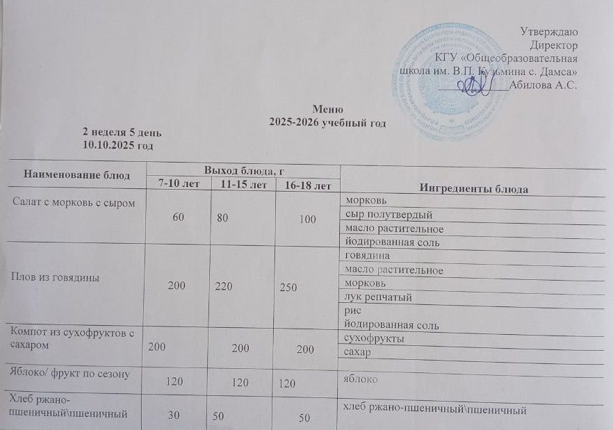 КГУ «Общеобразовательная школа им. В.П. Кузьмина села Дамса отдела образования по Шортандинскому району управления образования Акмолинской области»