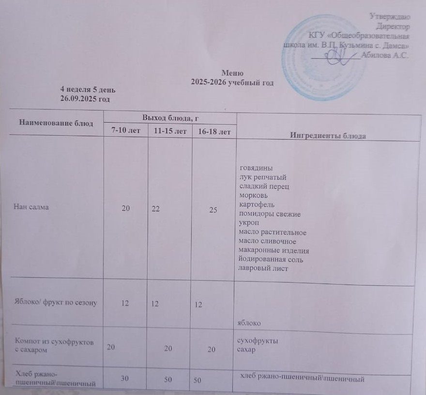 КГУ «Общеобразовательная школа им. В.П. Кузьмина села Дамса отдела образования по Шортандинскому району управления образования Акмолинской области»